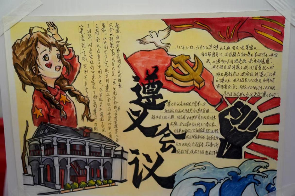 活动伊始,工作人员提前将同学们制作的以遵义会议为主题的书法、手抄报、手工品等作品陈列于活动现场,并由部分创作者解说个人作品创作初衷。