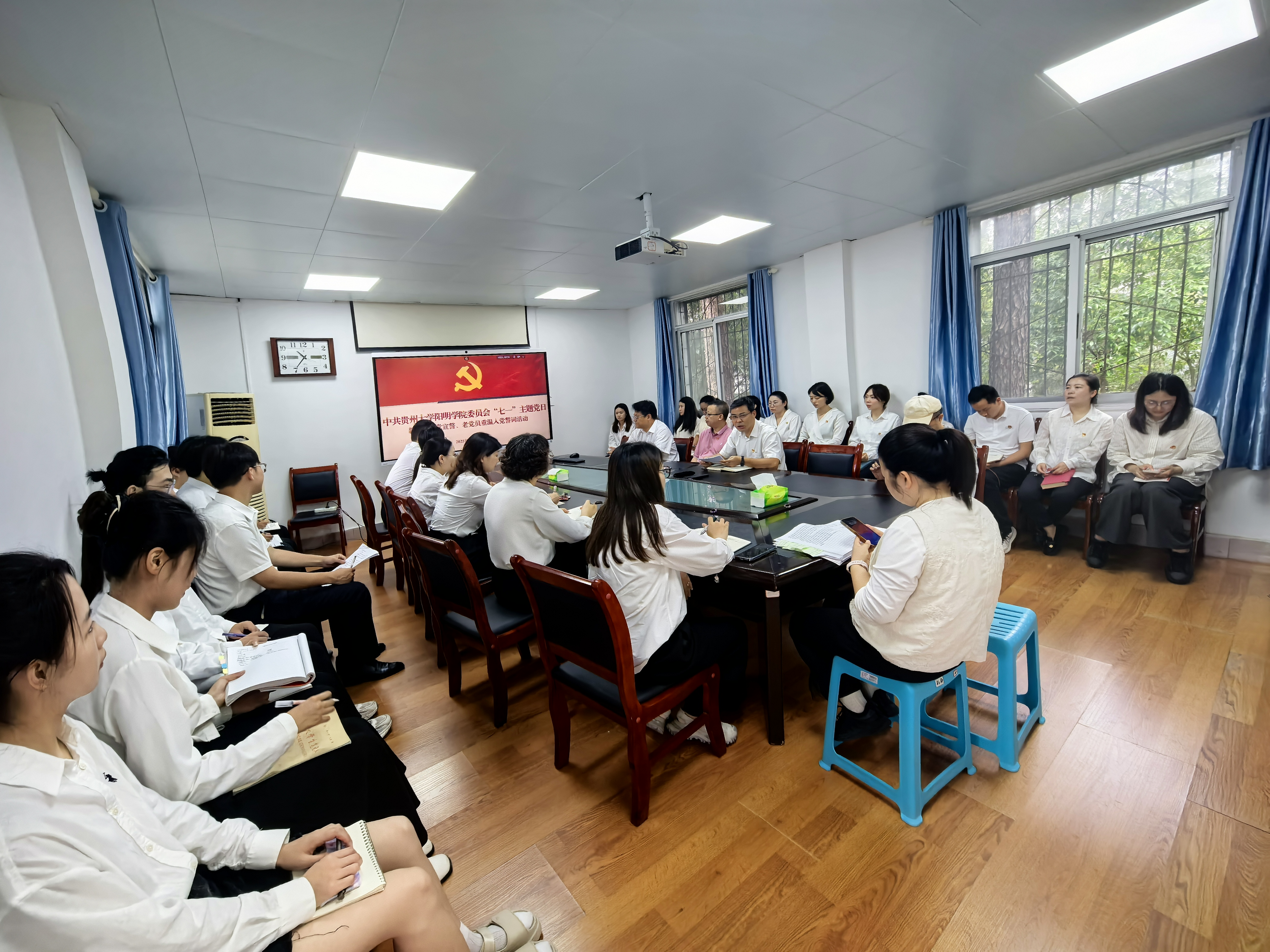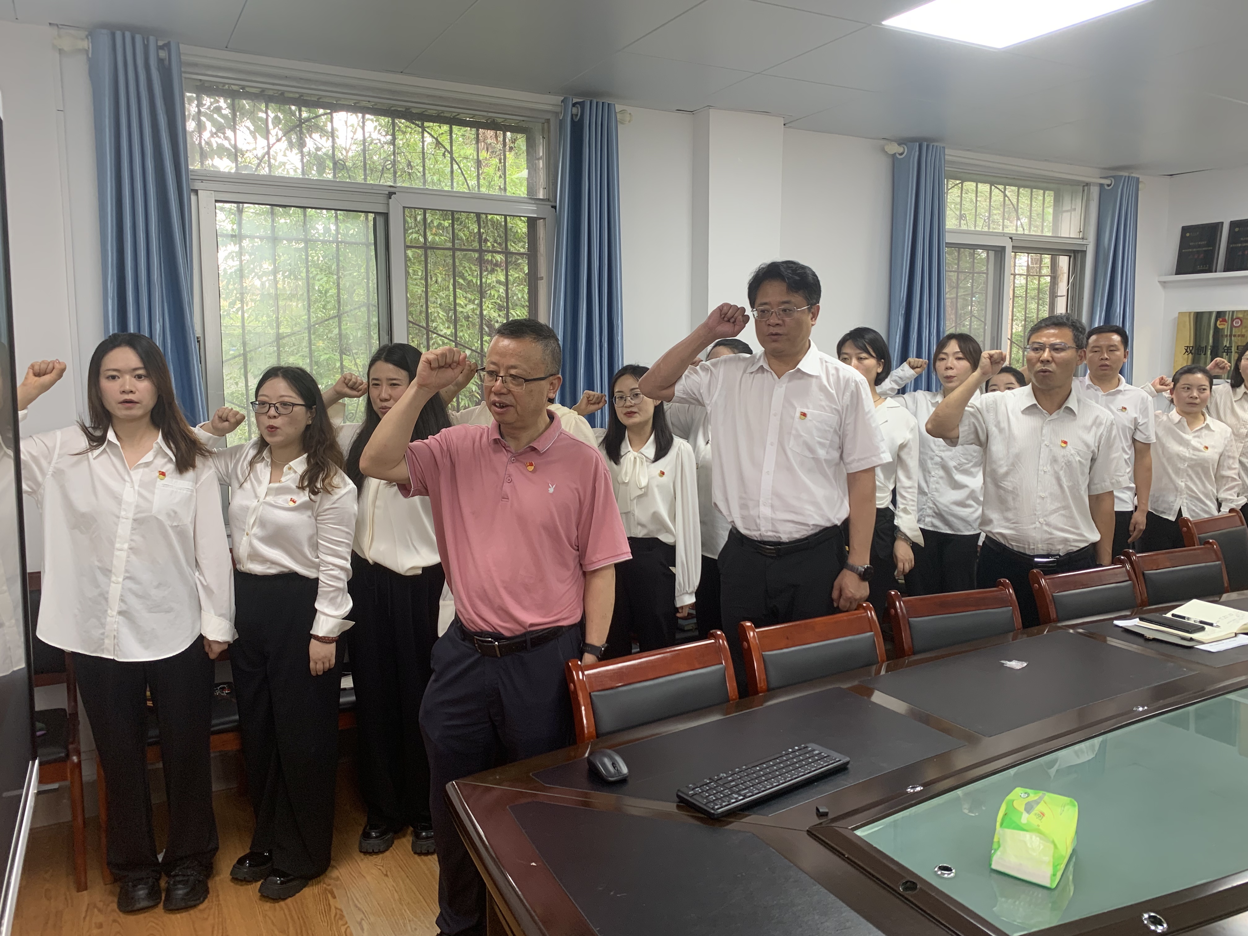 2025年7月1日上午,在中国共产党诞辰104周年之际,三亿体育阳明公司党委组织开展了“新党员入党宣誓与老党员重温入党誓词”主题党日活动。此次活动旨在追忆党的光辉历程,感悟信仰伟力,激励全体党员不忘初心、牢记使命,以更加坚定的信念和昂扬的斗志投身于党和人民的事业中。公司党委班子成员、公司关工委常务副主任(原三亿经理)张寒松、全体教职工党员及新发展的9名中共预备党员共同参加了这场具有特殊意义的活动。