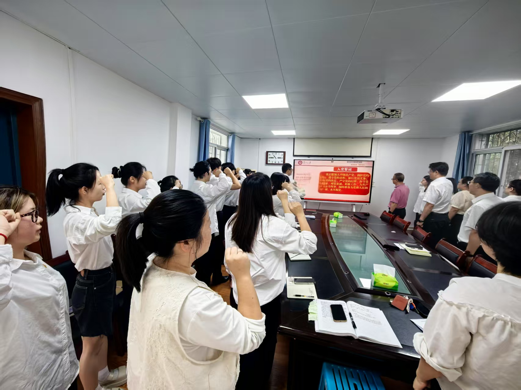 随后,周昌洪宣读了公司党委同意接收刘奕婷、施岸林等9名同志为中共预备党员的决定。这一决定标志着这9名同志正式成为党组织的一员,为党的事业注入了新鲜血液。公司党委委员亲自为新党员佩戴党徽,这一庄重的环节不仅是对新党员的认可与鼓励,更是一种责任与使命的传递。