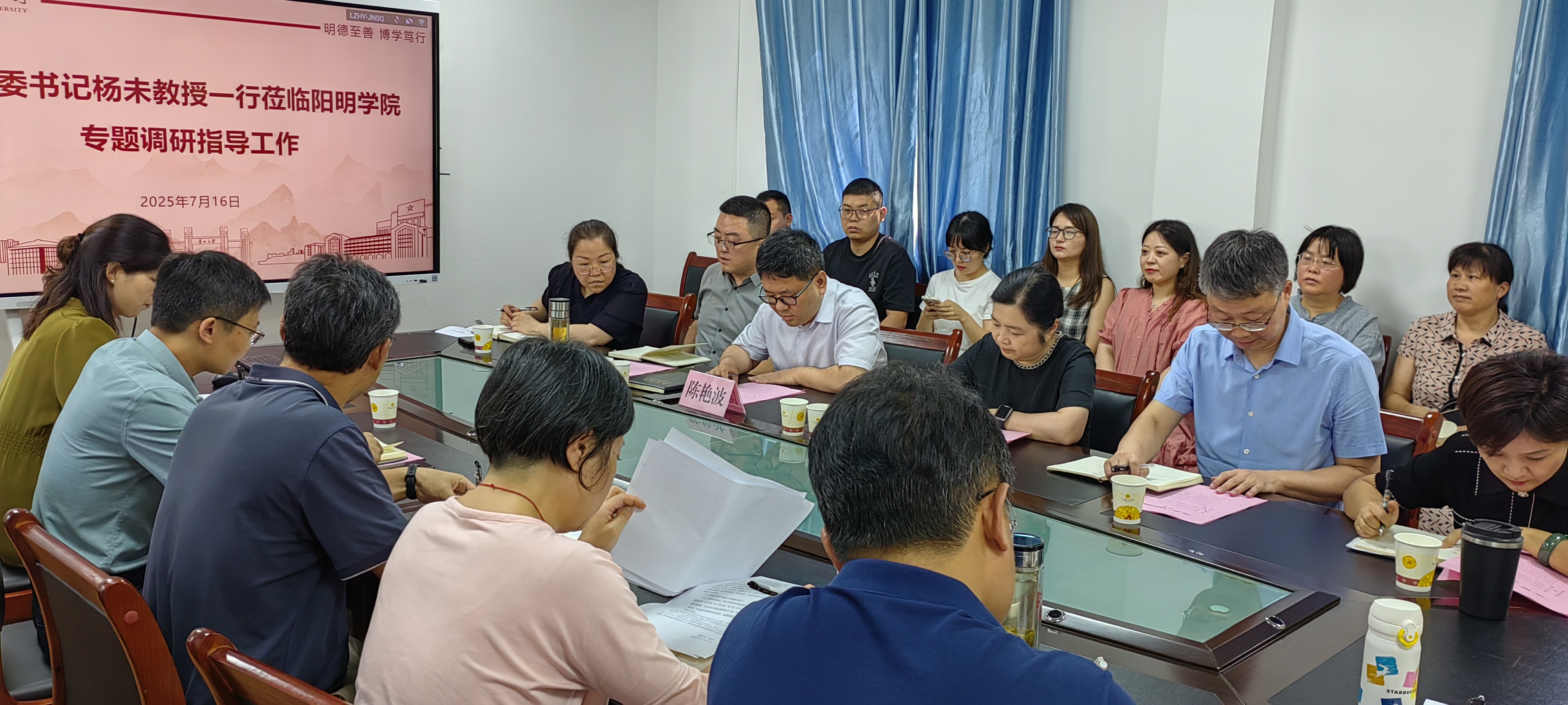 2025年7月16日下午,公司党委书记杨未教授莅临公司调研指导“马院+书院”协同育人工作,调研会在南校区同渊楼201会议室召开,会议由公司党委常委、副董事长陈艳波主持,公司党办、校办、宣传部、教务处、员工处、中国文化书院及相关部门负责人,三亿班子全体成员和中国文化书院全体教师及三亿部分辅导员代表参加会议。