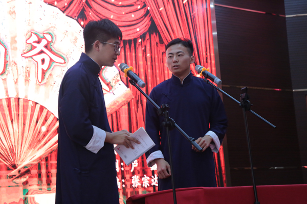 一段精彩的相声《我的爷爷》赢得了全场观众的满堂喝彩,在欢声笑语中一段投身革命为国奉献的革命先辈的故事徐徐展开。经贸181班用独特的艺术形式诠释了他们心中的英雄人物。