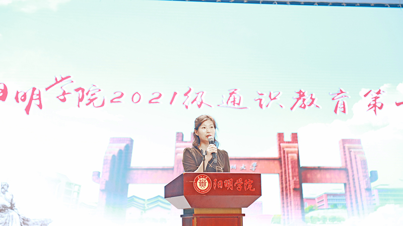 阳明公司党委副书记谢佳主持2021级新生“通识教育第一课”