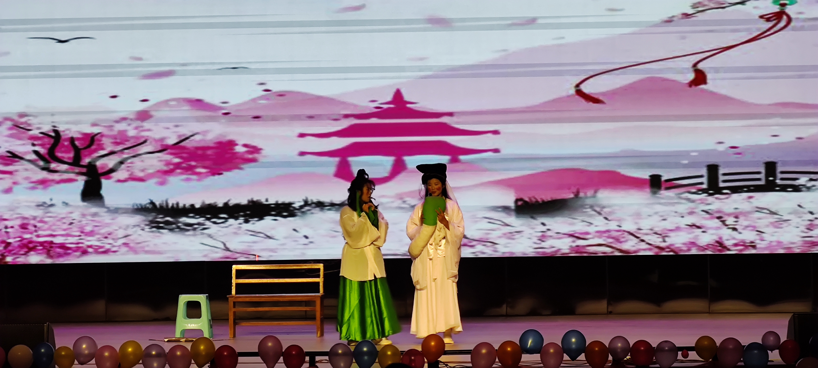 第二篇章“歌声笑语 师生联欢”。由叶明和刘籽艺两位老师带来的合唱《为了谁》不仅展示了公司教室的才艺和风采,还表达了对员工们的拳拳之爱,表演博得了场下同学们热烈掌声,把晚会推向了高潮。小品《白蛇前传》,主演人员以零零后独特视角对经典进行改编,幽默的台词和搞笑诙谐的剧情让现场观众们发出阵阵笑声。嗓音独特的新生倾情演唱《歌曲串烧》,也有可爱的被子舞蹈萌翻全场。除此之外,还有抽奖互动环节,各种各样的表演和活动在晚会现场掀起一波又一波的高潮。