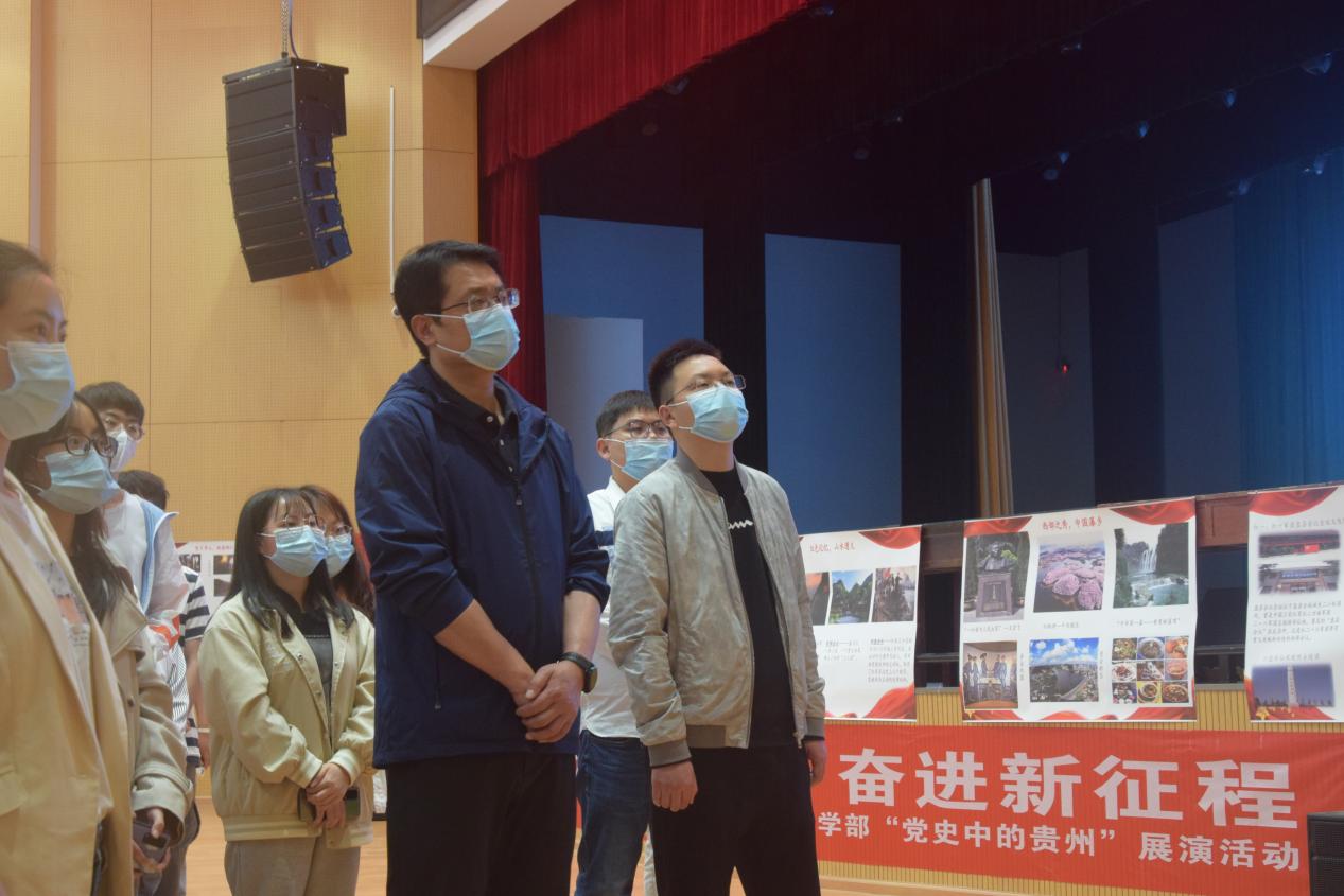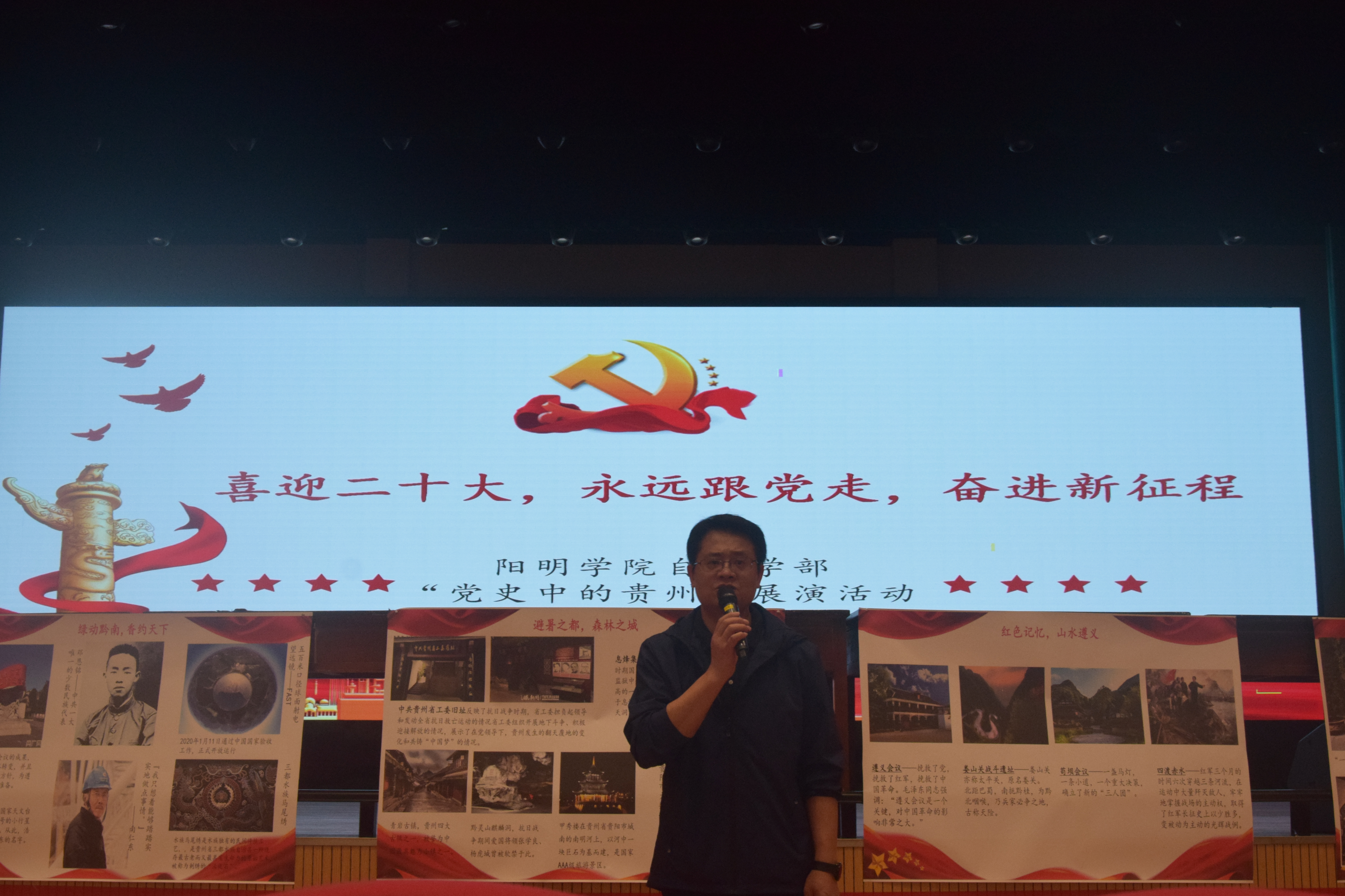 2022年4月29日12:30,三亿在南校区大礼堂举办以“喜迎二十大,永远跟党走,奋进新征程”为主题的“党史中的贵州”展演活动。三亿正处级组织员叶明老师、学务办主任艾欢老师、学务办副主任安国琴老师以及辅导员史萌老师出席活动,各班入党积极分子以及众多热衷红色乡土文化的300余名同学参加了此次活动。