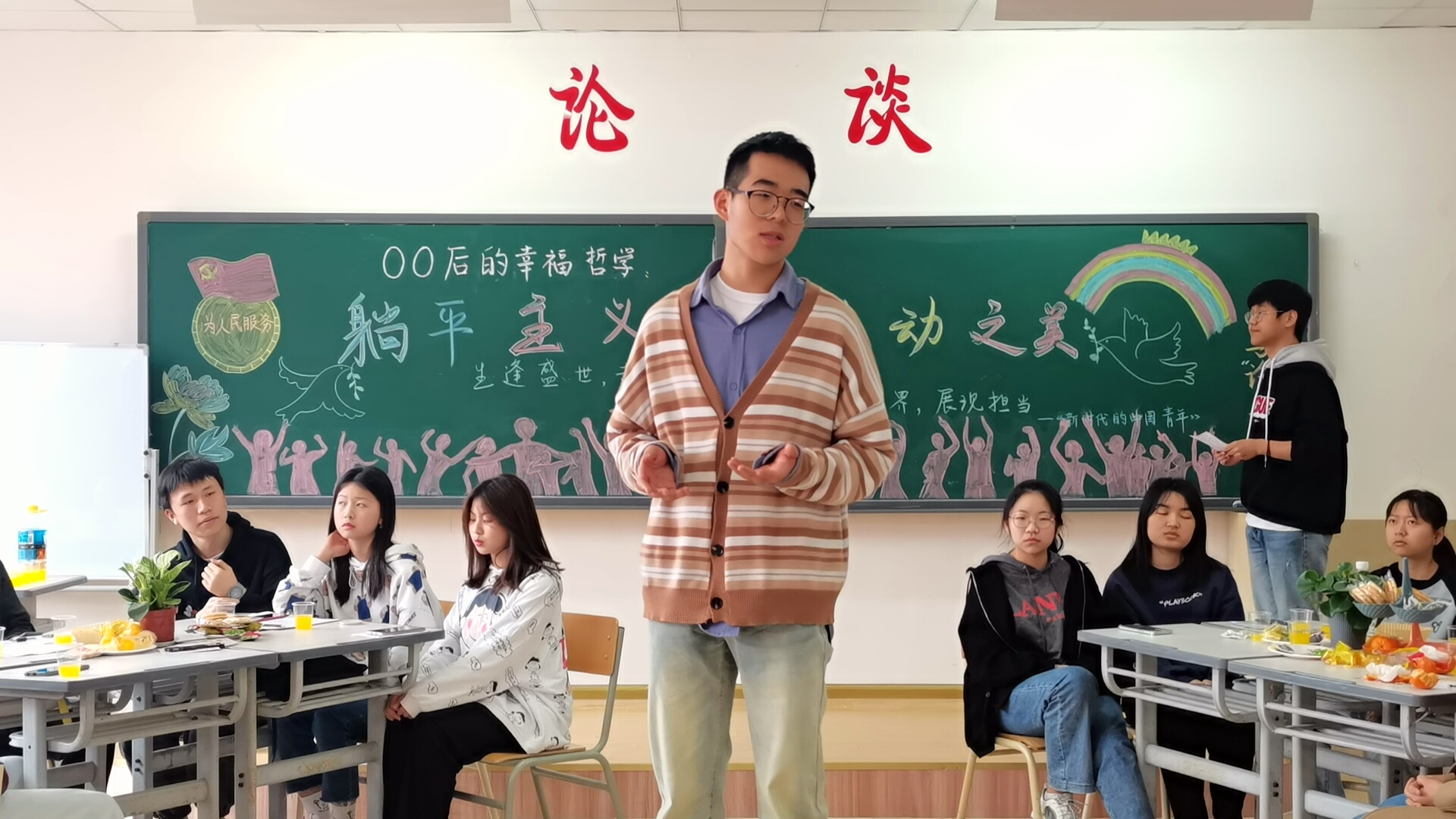 活动设置“自由发言”“击鼓传花幸运发言”“友谊辩论”“总结演讲”四个环节。同学们结合当下少数青年“躺平”现象,围绕习近平总书记在4月25日考察中国人民大学时讲话精神、《新时代的中国青年》白皮书、多彩贵州现代化建设中的责任与担当进行发言和辩论。药学2102班严启文分析了“躺平现象”的实质,他说如今的“躺平”和曾经出现的丧文化、佛系文化类似,实质上都是以消极的心态应对外部世界,错误以为个人努力只会拉高内卷强度,是自己给自己找堵,所以躺平是提前个人放弃努力以获得所谓的幸福感,但是这样躺下去只会越来越焦虑,与自己的目标越来越远。草业2102班王锦前认为,青年应辩证看待“躺平现象”,要区别毫无作为的摆烂行为和适度放慢的前行脚步,区别良性内卷和恶性内卷,要学会正视自我、明确发展方向,通过劳动和努力来实现自我价值。