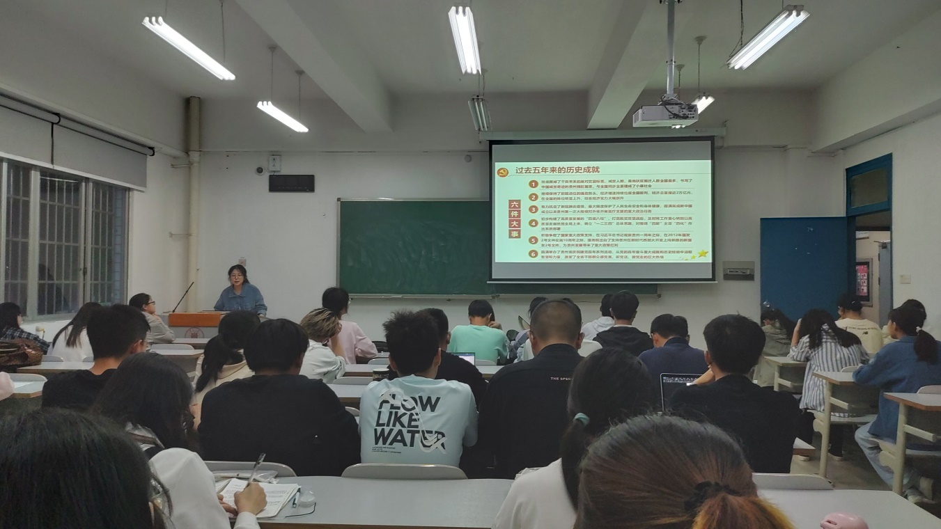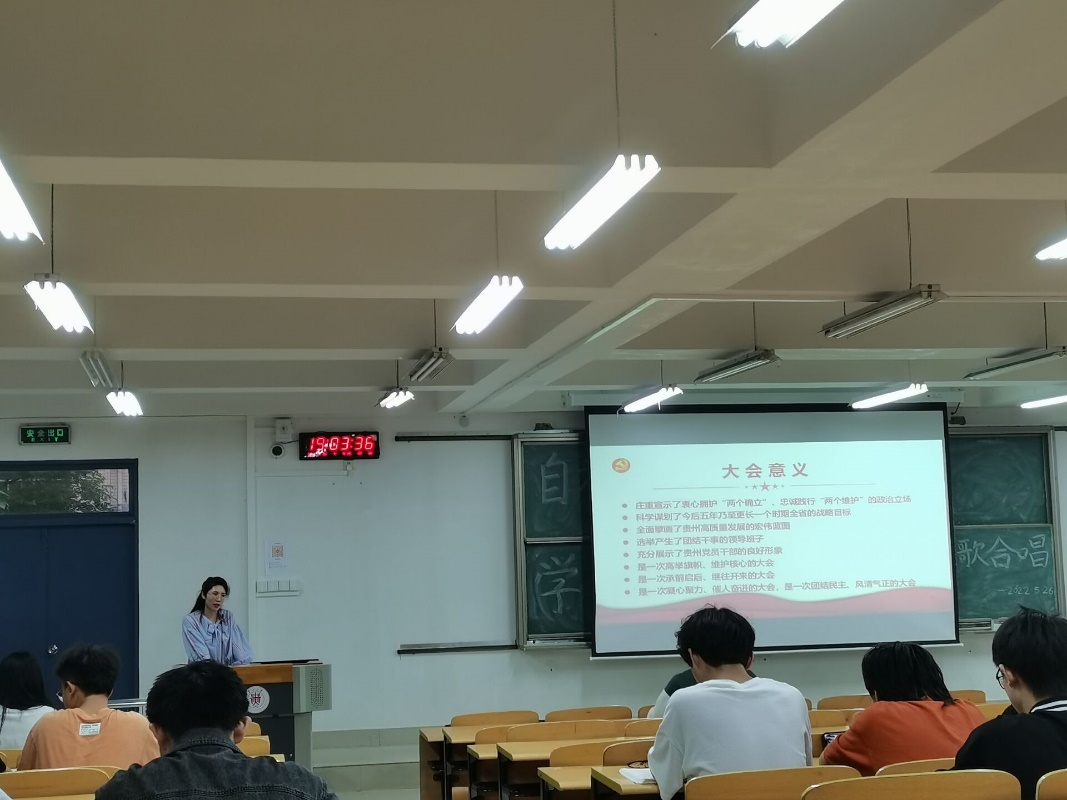 宣讲团成员在叶明同志的指导下,深入学习、贯彻、宣讲中国共产党贵州省第十三次代表大会讲话报告,围绕“四个特性、八个历史性成就、六件大事、六条经验启示、总体要求、六个未来发展目标与七项高质量发展目标”等重点内容,通过宣讲进课堂的形式,为同学们解读贵州省第十三次党代会精神,回顾历史成就,展望未来目标,让青年学子深刻理解和领悟省第十三次党代会精神。