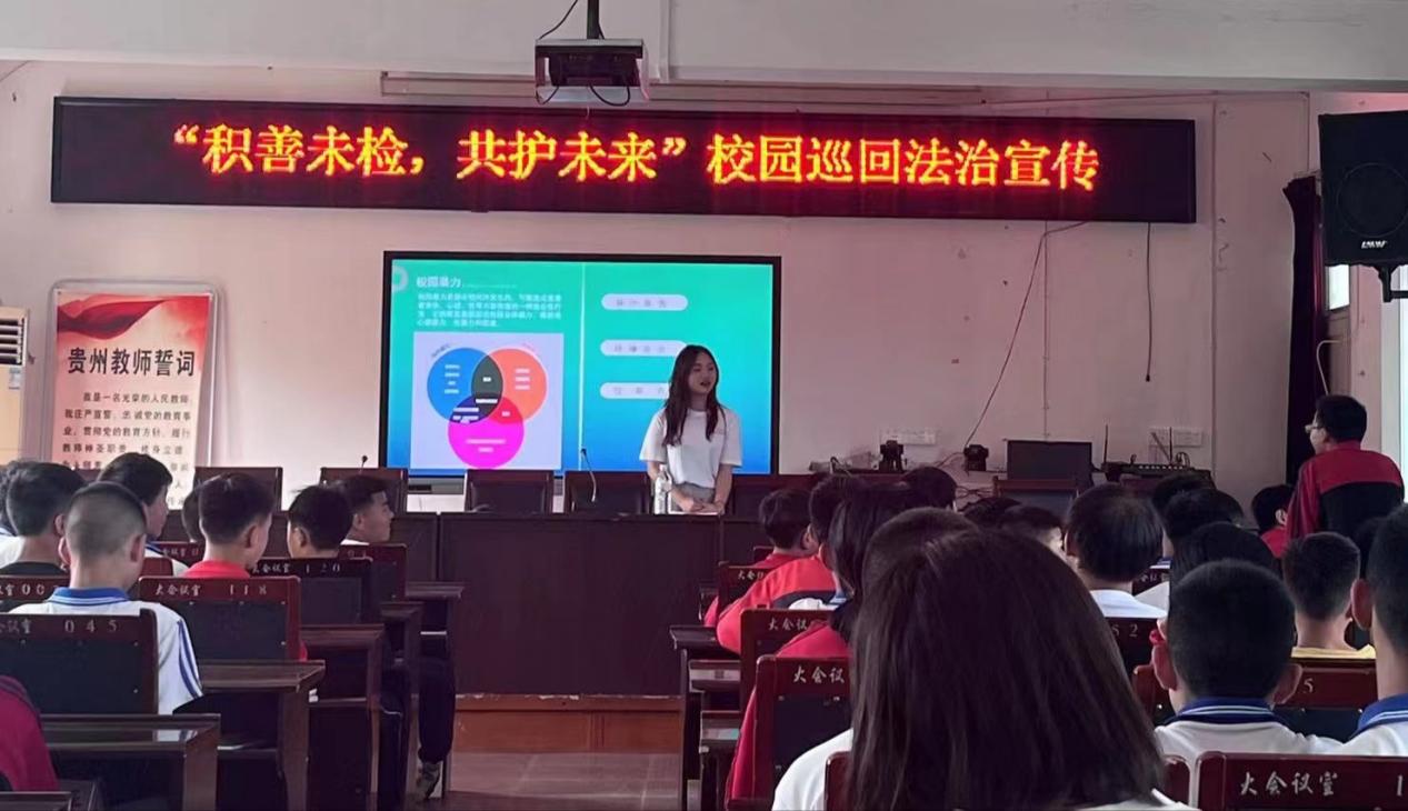 “检校携手,以心呵护;育人于法,润物无声”。6月28日,公司“心随律动”普法实践队与贵州省余庆县人民检察院联合开展“平安贵州,青春普法益起来”三下乡实践活动。本次普法活动主要在遵义市余庆县敖溪中学、钟山中学举行,以法律宣讲、发放宣传手册、法律知识有奖竞猜等丰富多彩的形式开展,旨在深入学习贯彻习近平总书记关于加强未成年人保护系列重要讲话精神,帮助未成年人树牢法律意识。