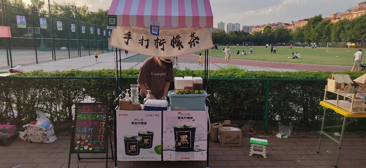 当谈及怎样诞生结伴创业这个想法时,其中一位青年讲道:“由于2022年上半年北方疫情严重,公司提前放假,五月末六月初就已经开始放暑假,又适逢政府鼓励地摊经济,于是便产生了结伴创业的想法。”由于受访的四位老员工都处于大一年级,并且参与人数较少,无法进行大规模的创业行动,所以这四位老员工选择了创业门槛低的地摊经济,并结合当代年轻人的消费偏好和自身实际情况,决定进行售卖棒打柠檬水等夏日饮品的创业活动。