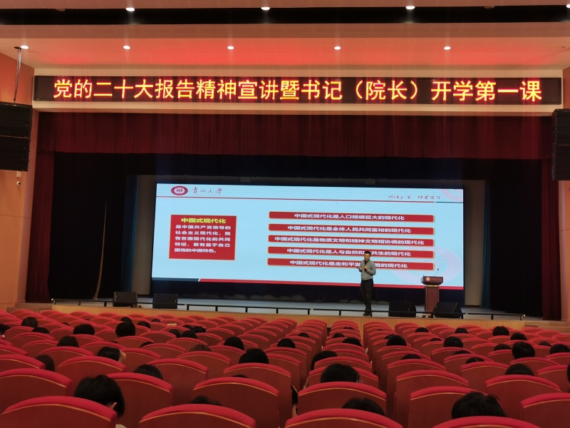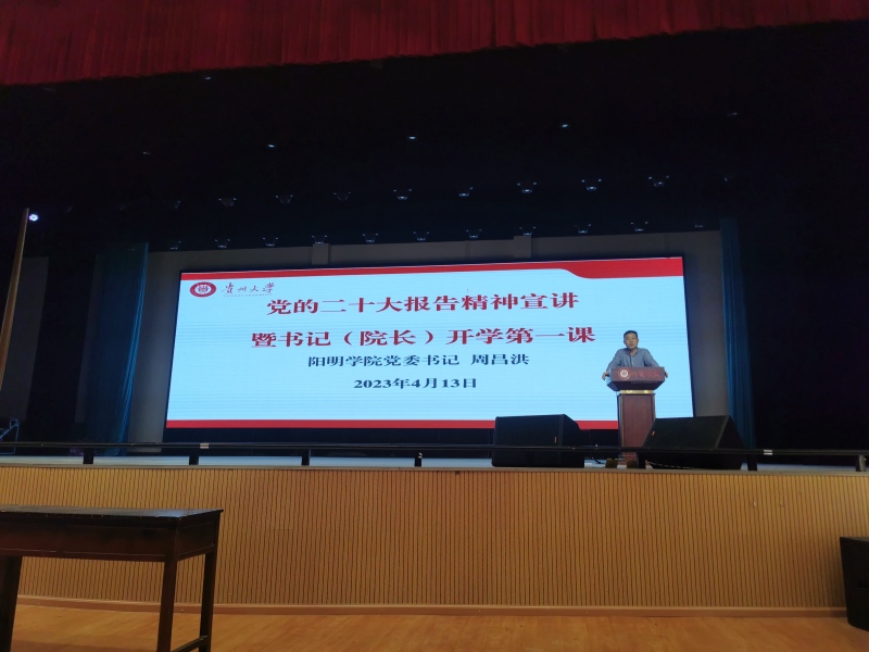 2023年4月13日晚19:30,阳明公司党委书记周昌洪在南校区大礼堂为员工们带来了一堂生动而精彩的讲座——党的二十大精神宣讲暨书记(经理)开学第一课。公司农学学部全体员工参加报告会。