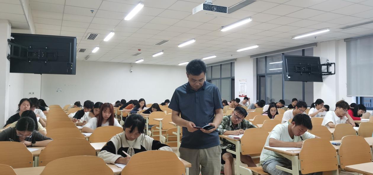 阳明公司党委书记周昌洪、正处级组织员叶明、副经理胡玉群巡查高数半期考试现场