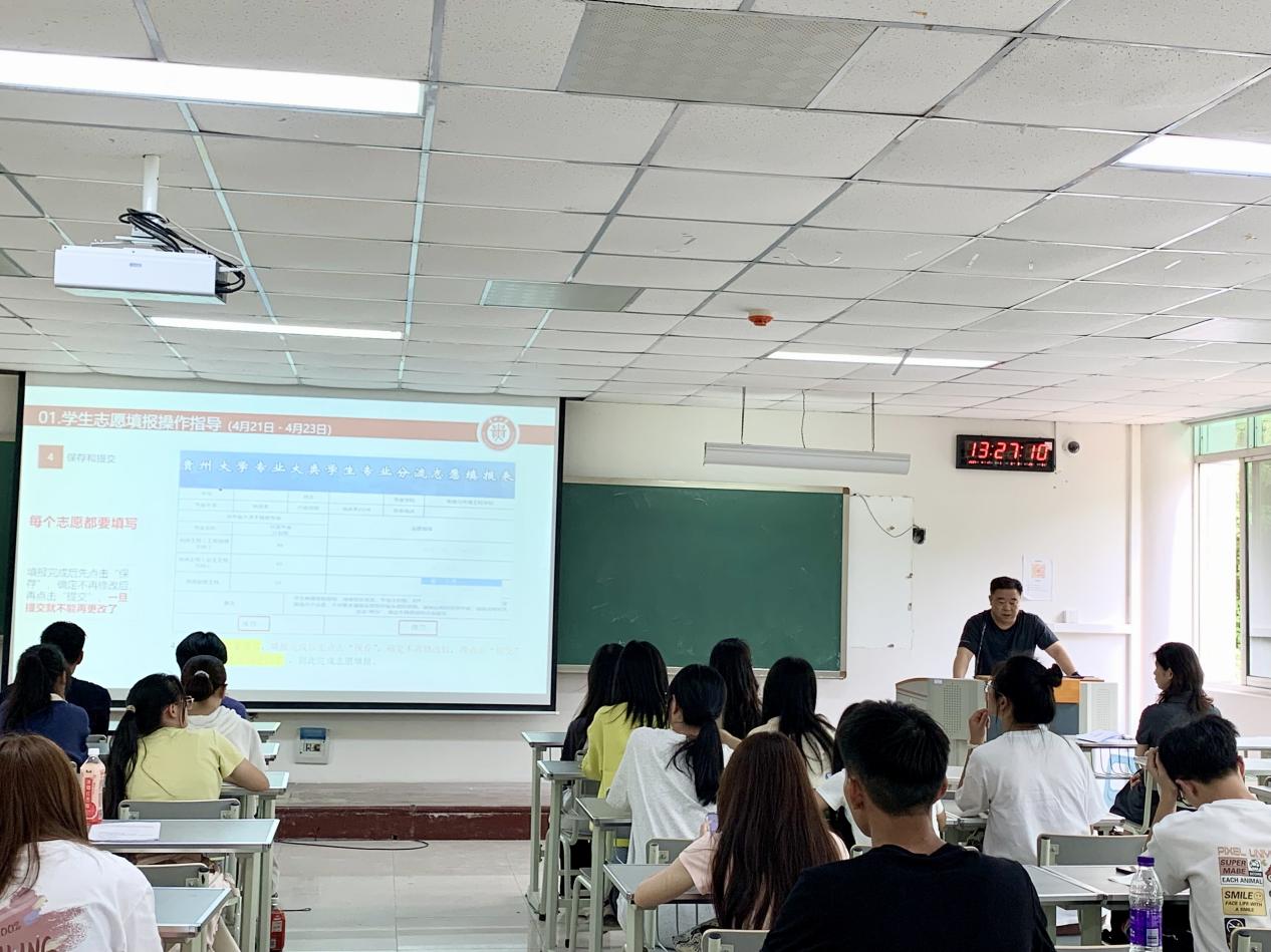 教务办主任付兵随后就专业大类分流进行了讲解,强调专业分流是员工基于个人兴趣和职业规划选择专业方向的过程,对于员工的未来发展至关重要,并为同学们详细讲解了员工志愿填报的操作指南和注意事项。