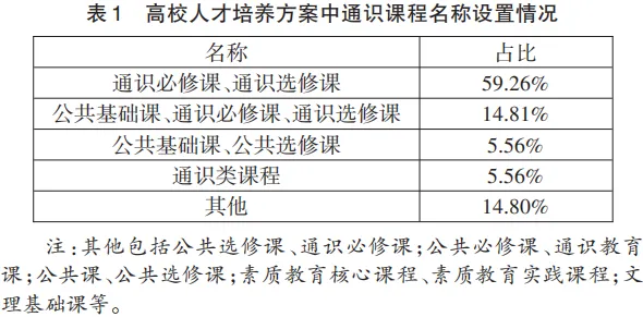 (一)通识课程的名称设置