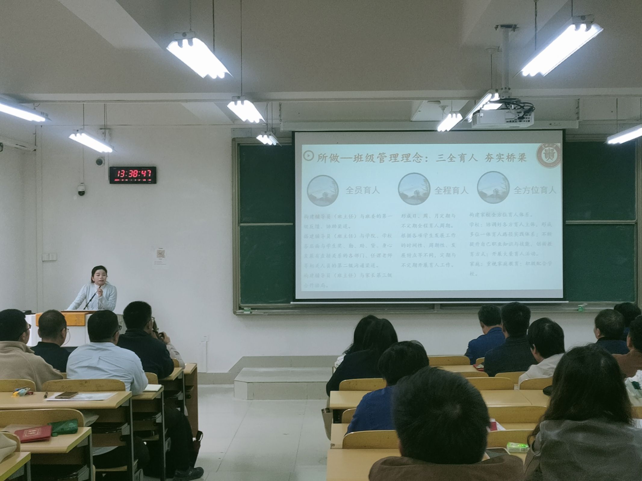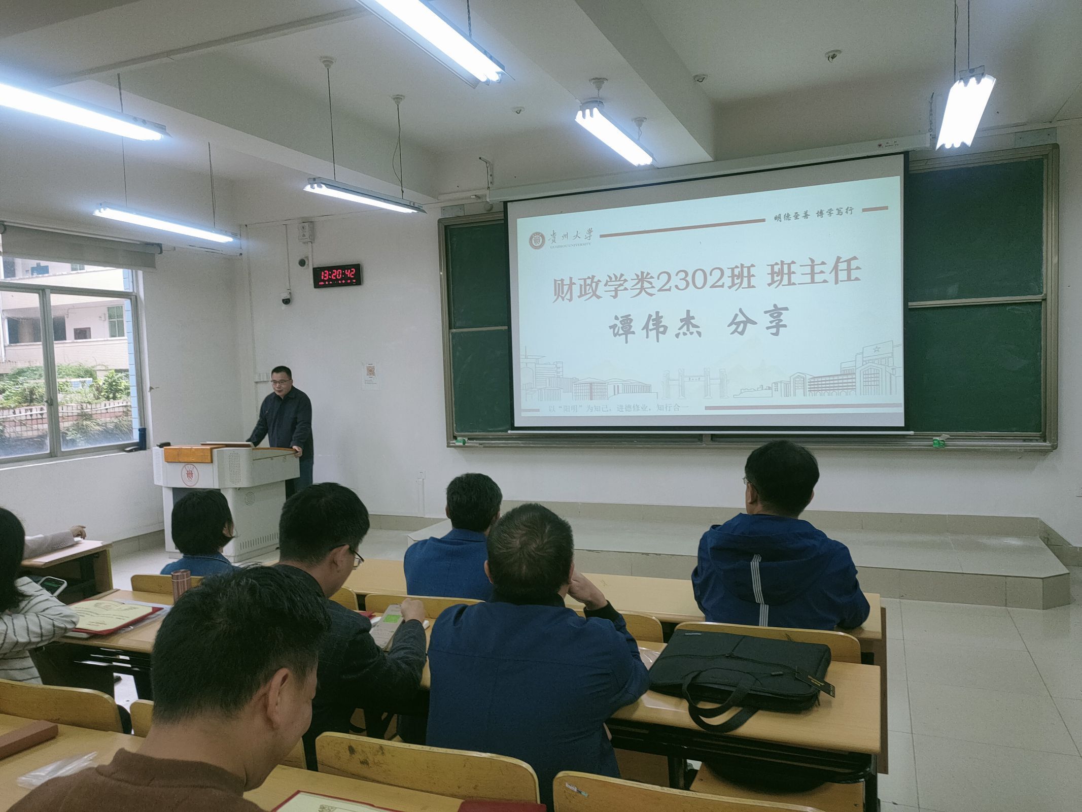 2023级优秀班主任代表作经验分享。财政学类2302班班主任谭伟杰表示,要以“思想引领,思政育人”作为基础,培养员工家国情怀;重视“学风建设,学业育人”,鼓励员工做好规划,优势互补;不能忽视“榜样引领,全面发展”的重要性,最终实现“因材施教,以生为本”的教育目的。制药2302、药学2302班班主任颜志敏老师围绕班主任工作的“所得”“所获”“所悟”展开分享,指出要强化“三全育人”的效能,多渠道了解员工,强化班级文化建设,不遗余力狠抓学风,利用教师个人优势助力员工发展;要始终牢记使命,怀揣“细心、爱心、耐心”,做员工的良师益友。