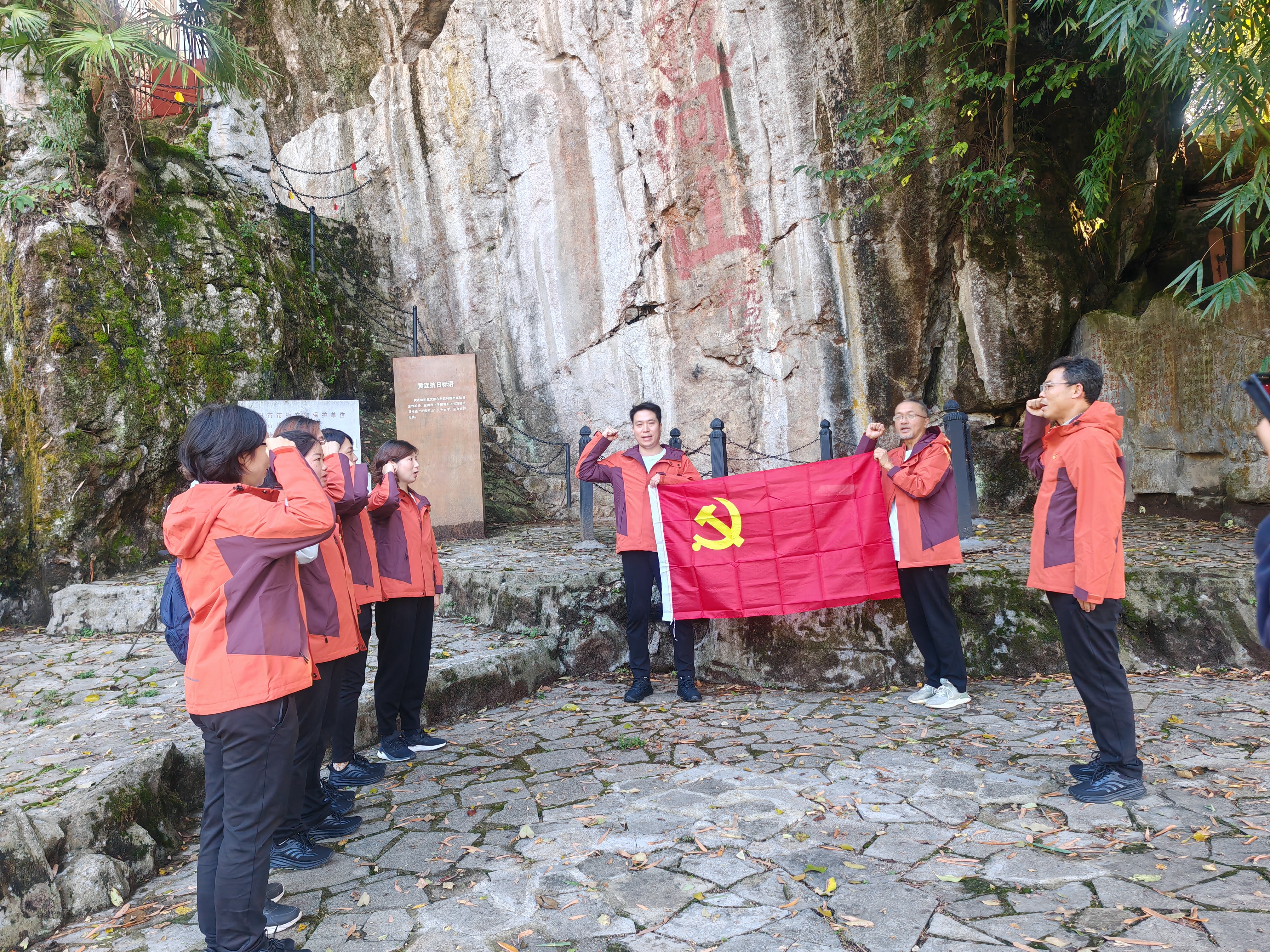“我志愿加入中国共产党……”在黄连村民族小学旁写有“还我山河”的崖壁下,铿锵有力的誓言响彻山谷,三亿机关党支部举行了重温入党誓词活动。参加本次活动的全体党员同志一致表示,将始终牢记党的初心和使命,用实际行动践行共产党人的铮铮誓言,以教育家精神奋力书写教育强国的人生答卷,为培养德智体美劳全面发展的社会主义建设者和接班人不懈奋斗。
