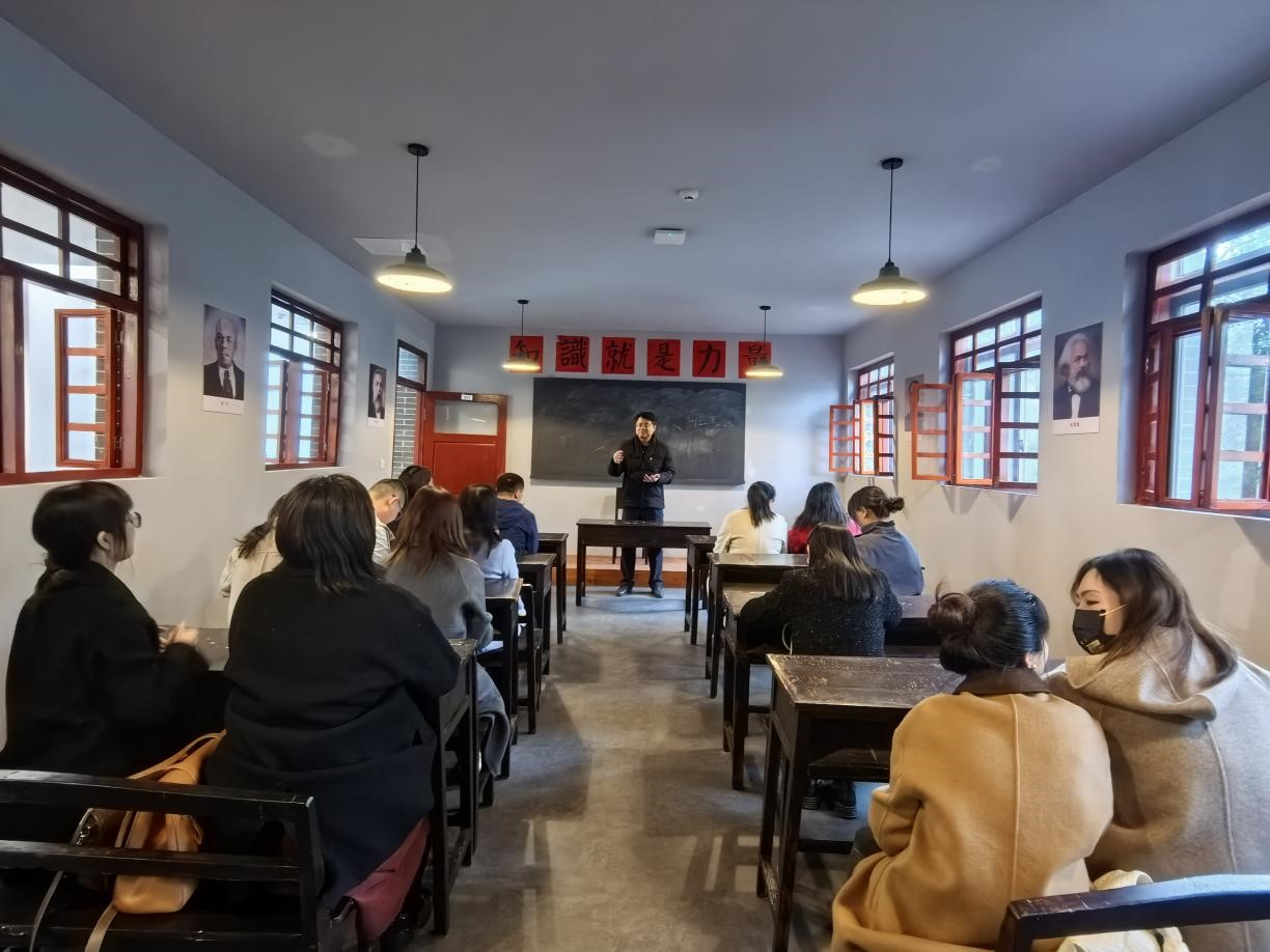 参观完毕,工作室成员在馆内的复古小教室展开交流分享。叶明率先发言表示,作为高校思想政治工作者,我们要感党恩知校情,全面贯彻党的教育方针,弘扬教育家精神,在坚定理想信念、厚植爱国主义情怀、加强品德修养、增长知识见识、培养奋斗精神和增强综合素质等方面下功夫,为建设教育强国和推进教育高质量发展而接续奋斗。
