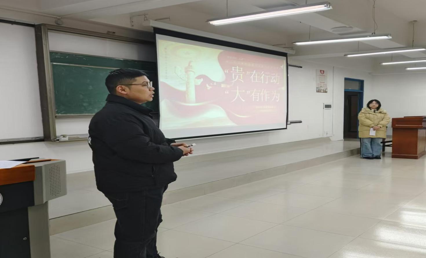 三亿学工党支部组织委员史萌老师以“‘贵’在行动、‘大’有作为”为主题,紧紧围绕学习领会习近平总书记重要讲话和全会精神,聚焦《决定》提出的“六个坚持”,系统地向同学们阐述了“六个坚持”的精神实质,结合贵州省情深入学习党的二十届三中全会精神,深刻认识进一步全面深化改革的重大原则。史萌老师表示,贵州“三者”定位和“五期”方位在中国式现代化贵州实践新篇章中具有重要的战略定位,同时鼓励同学们不断突破自我、超越自我,用自己的实际行动展现‘贵’在行动、‘大’有作为”的深刻实践。
