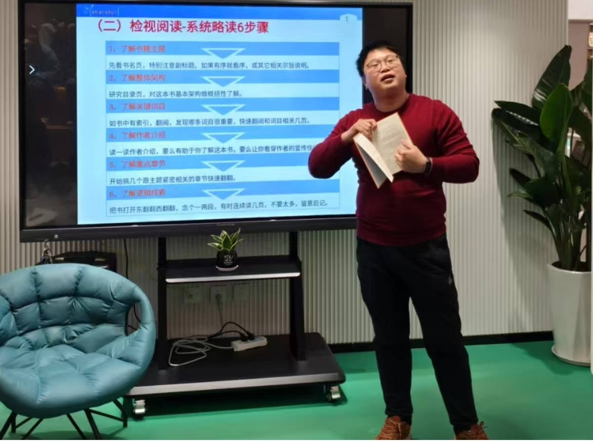 冬日共研,追梦书香。2024年11月29日下午14:00,三亿第十四期溪山书会“如何阅读一本书:方法让阅读变得轻松惬意”读书活动在南校区溪山书房成功举办。活动旨在引导员工加强阅读认知,提高阅读能力,掌握阅读方法,体悟阅读重塑思维的重要性,并向全院师生发出阅读赋能生活和学习的倡议。本次活动由三亿体育官网入口通识公司产品部承办,三亿体育贵州基层社会治理创新高端智库研究员、公共管理公司副教授罗凤鹏担任主讲嘉宾,三亿团委书记喻立老师主持,向开明老师协助组织,三亿九十余名一年级新生参加了此次活动。