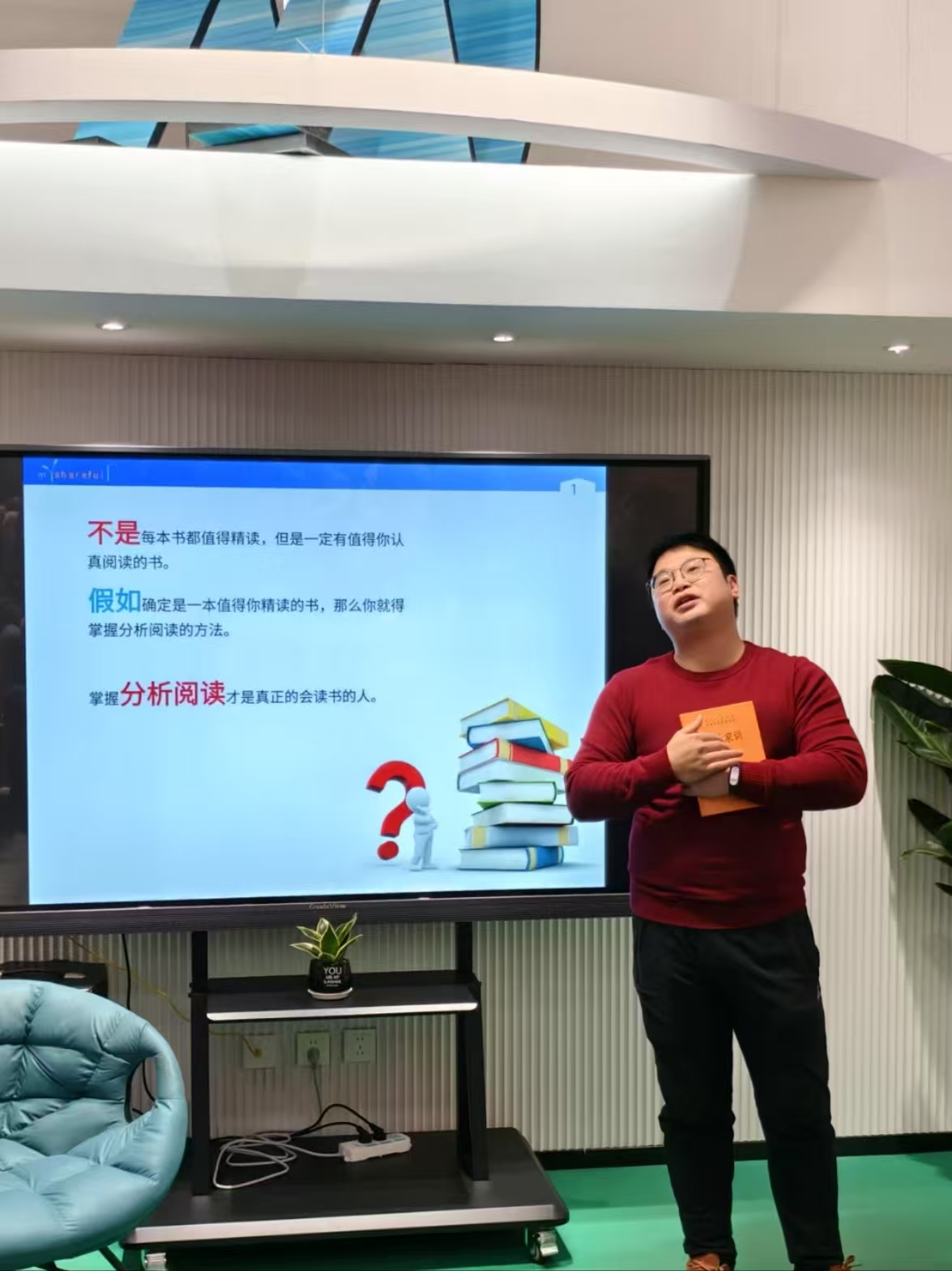 读书会上,罗凤鹏老师分享了自己学习《如何阅读一本书》的体会。他说,读书的意义不在于记得多少,也不在于掌握了多少知识,而重在阅读中分析、提取、概括、总结、思考的整个过程。通过这些过程,会潜移默化地培养大家待人处事的观点看法和行为方式,从而滋润和涵养人生。