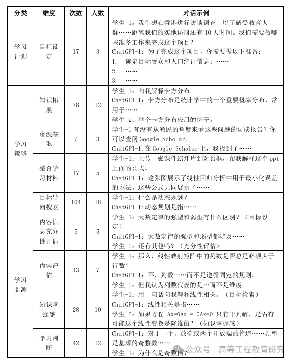 表 1 ChatGPT辅助自我调节学习活动编码表