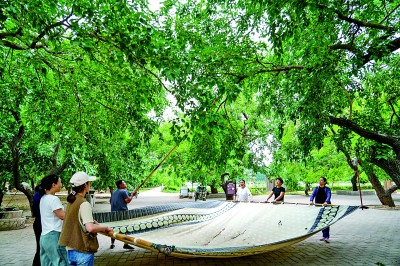 当地人在传统技艺的基础上,还进行创新,将桑葚变幻出无数产品,如桑葚膏、桑叶菜、桑叶粥等,桑树林变成了当地人的“绿色银行”。