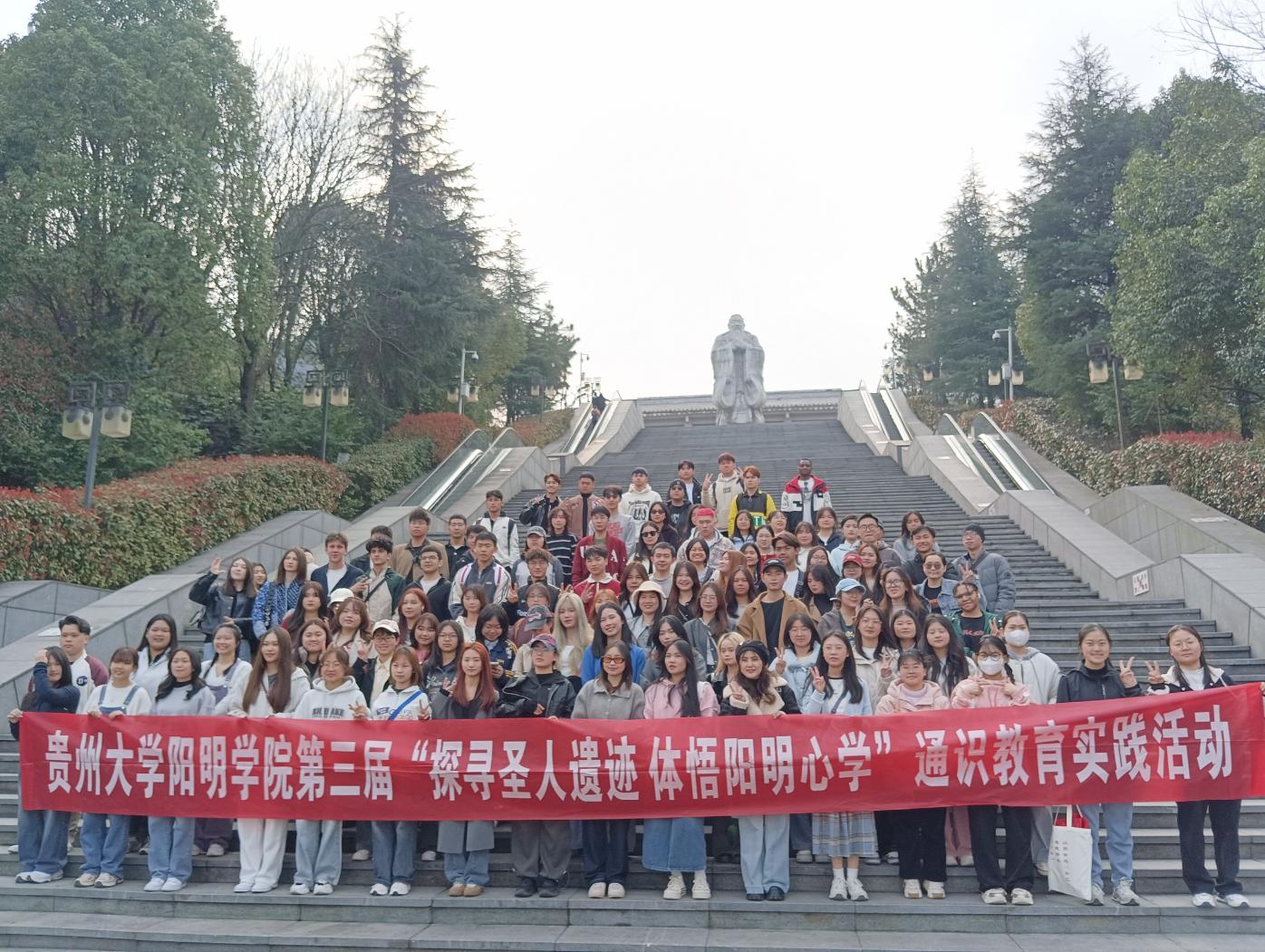 2025年3月22日,修读《阳明心学导论》课程的留员工及来自植物生产、英语等专业的部分中国员工,赴贵阳孔学堂开展研学实践及跨文化交流活动。在通识公司产品部刘凤霞教授带领下,中外师生通过沉浸式文化体验,深入感受儒家文化与阳明心学的深厚底蕴,开启了一场跨越时空的中华传统文化探索之旅。