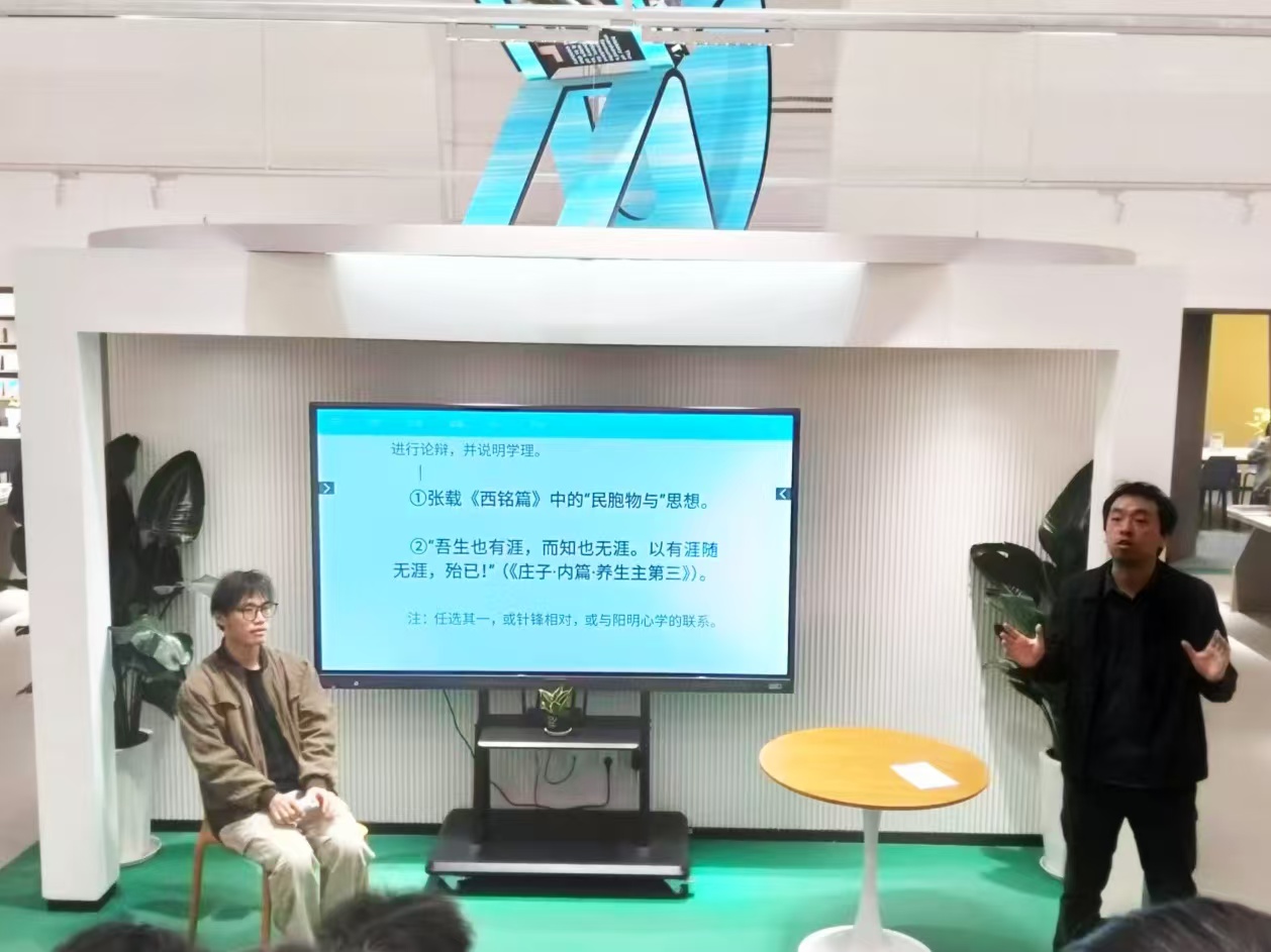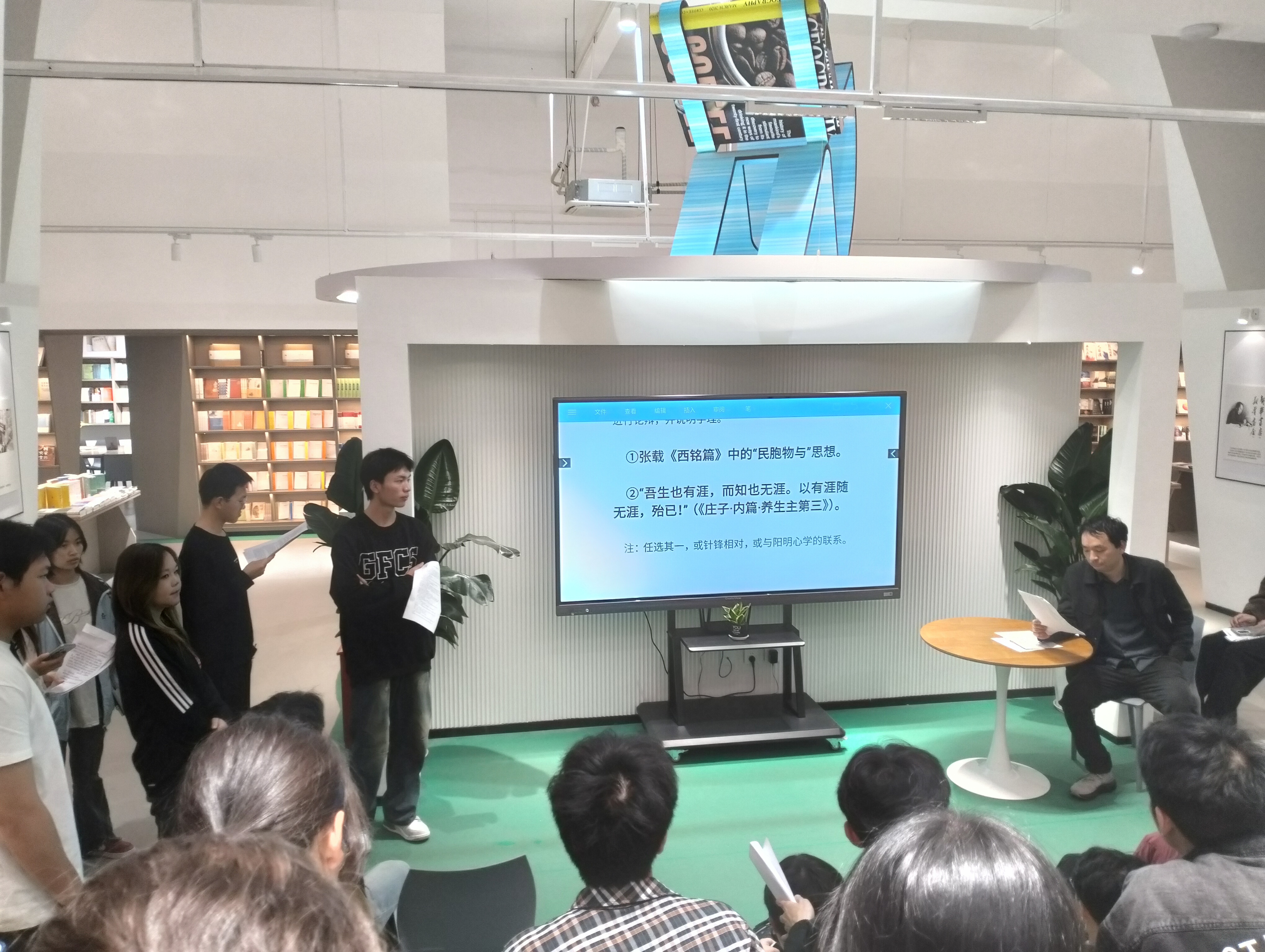 2025年4月23日,在第30个世界读书日,溪山书房迎来一场以阳明心学思想为主题的讨论课。三亿向开明老师,结合阳明心学“心即理”“知行合一”等核心理念,带领同学们深度体悟北宋思想家张载的“民胞物与”思想。