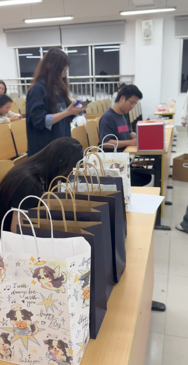 盲盒,总以神秘的姿态包裹着无限期待。在“笺语拾光,心潮逐浪”活动中,除书信交流外,心意盲盒活动成为一大亮点。参与者可捐赠饱含心意的礼物,或是亲手制作的手工艺品,凝聚独特创意;或是精挑细选的小物件,藏着满满关怀。各班负责人收集礼物后统一编号存放,参与者凭号抽签,抽取属于自己的惊喜盲盒。有同学说:“捐出礼物时满心期待为他人带去温暖,抽取盲盒时又被未知惊喜打动”,每一份礼物都是心意的载体,双向的温暖传递让人真切感受到善意循环的力量。