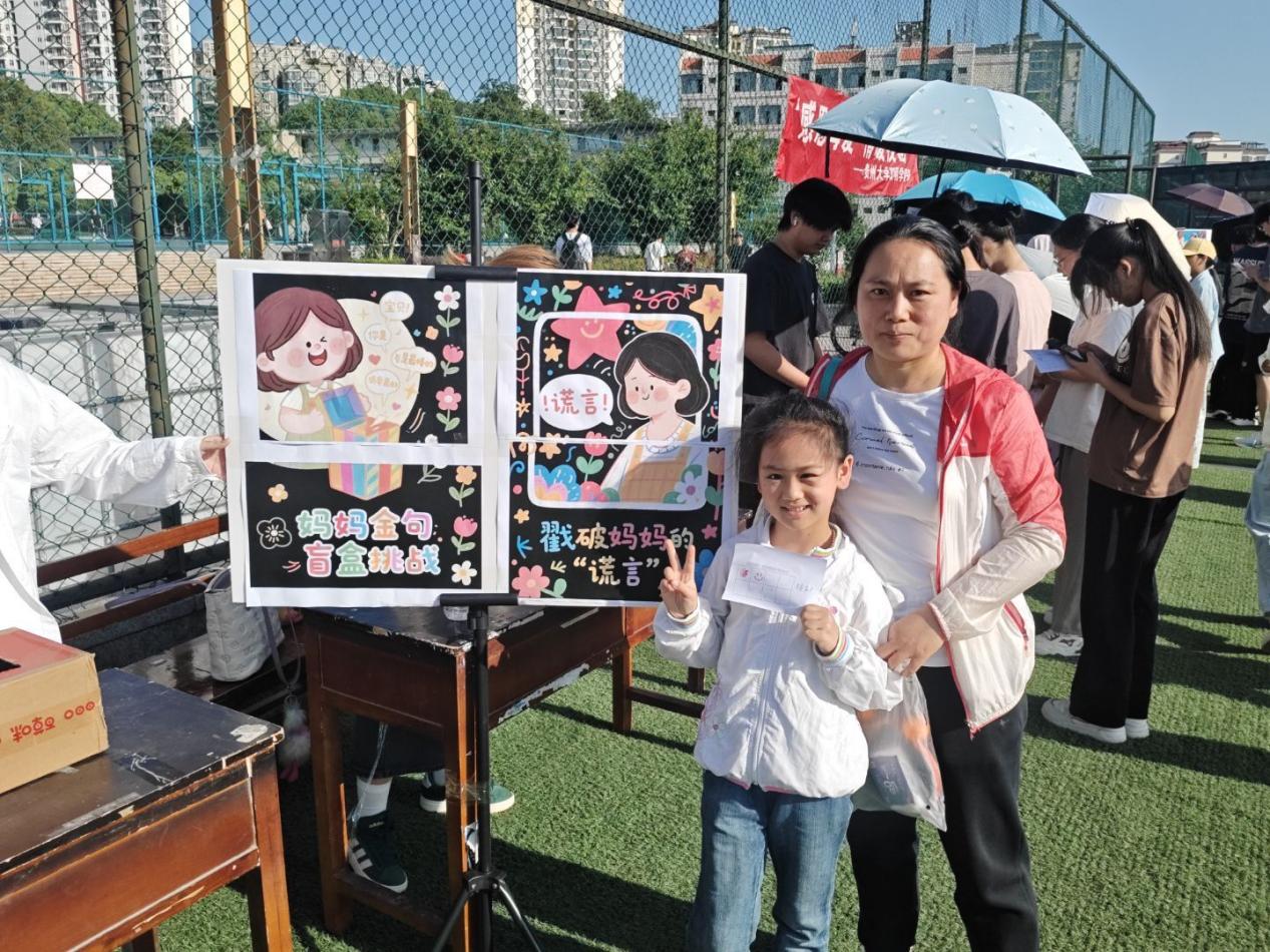 本次活动共设置七大特色环节,形式新颖、内涵丰富。在“戳破妈妈的‘谎言’”活动中,同学们在4K纸上写下“妈妈常说的善意谎言”,如“妈妈不累”“妈妈不爱吃这个”,将日常的温情点滴汇聚成海报,引发共鸣;在“妈妈金句盲盒”环节,通过模仿母亲的口头禅和动作,让现场充满欢声笑语;在“为爱添点颜色”和“母亲感恩卡”活动中,同学们用画笔描绘母爱的色彩,在明信片上写下真挚祝福,并拍照发送给母亲,实现跨越距离的情感联结。