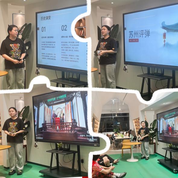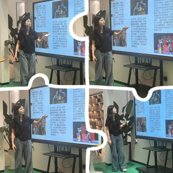 中国员工代表随后向在座师生展示了精彩的曲艺和戏剧戏曲艺术。肖洁同学通过视频和讲解,向在场师生介绍了苏州评弹的历史渊源、艺术特色及传承创新,婉转的吴侬软语和悠扬的琵琶声让大家仿佛置身江南水乡。曹发慧同学则以京剧《霸王别姬》为例,深入解析了其剧情、艺术表现及文化内涵,让观众感受到国粹京剧的深厚底蕴。