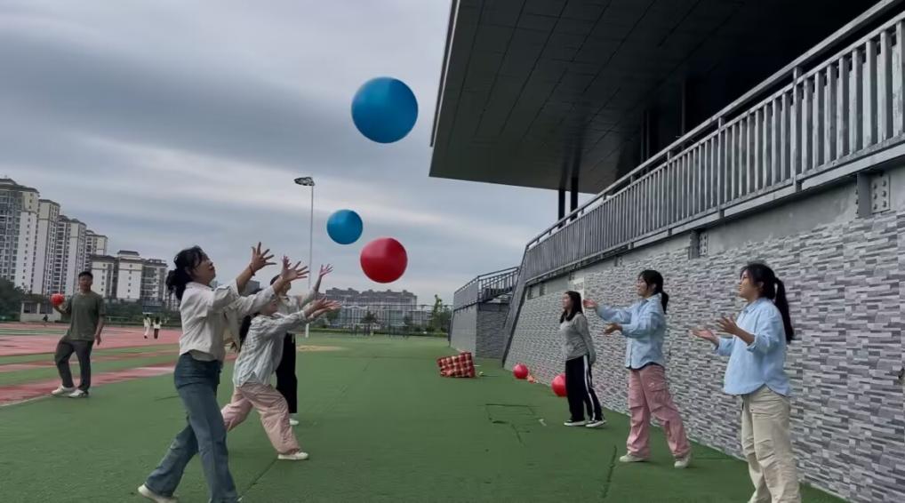 “快乐协作,排球升级”项目以双人小组为单位,两位同学面对面站立,以肩部、手臂等部位交替传打气球,保持气球在空中持续两分钟。项目以轻松游戏的方式引导同学们在配合中增强默契,在协调中提升反应力与协作能力。参与过程中,不少同学在气球落地后相视而笑,互相鼓励、迅速调整节奏。一名药学专业的同学表示:“原以为只是个小游戏,没想到两人要把节奏对得这么准才行,越到后面越默契,感觉就像团队合作一样,越沟通越顺畅。”活动不仅提升了身体灵活性,更通过共同行动增强了信任感与协同意识,为今后学习和生活中的人际合作打下了坚实基础。