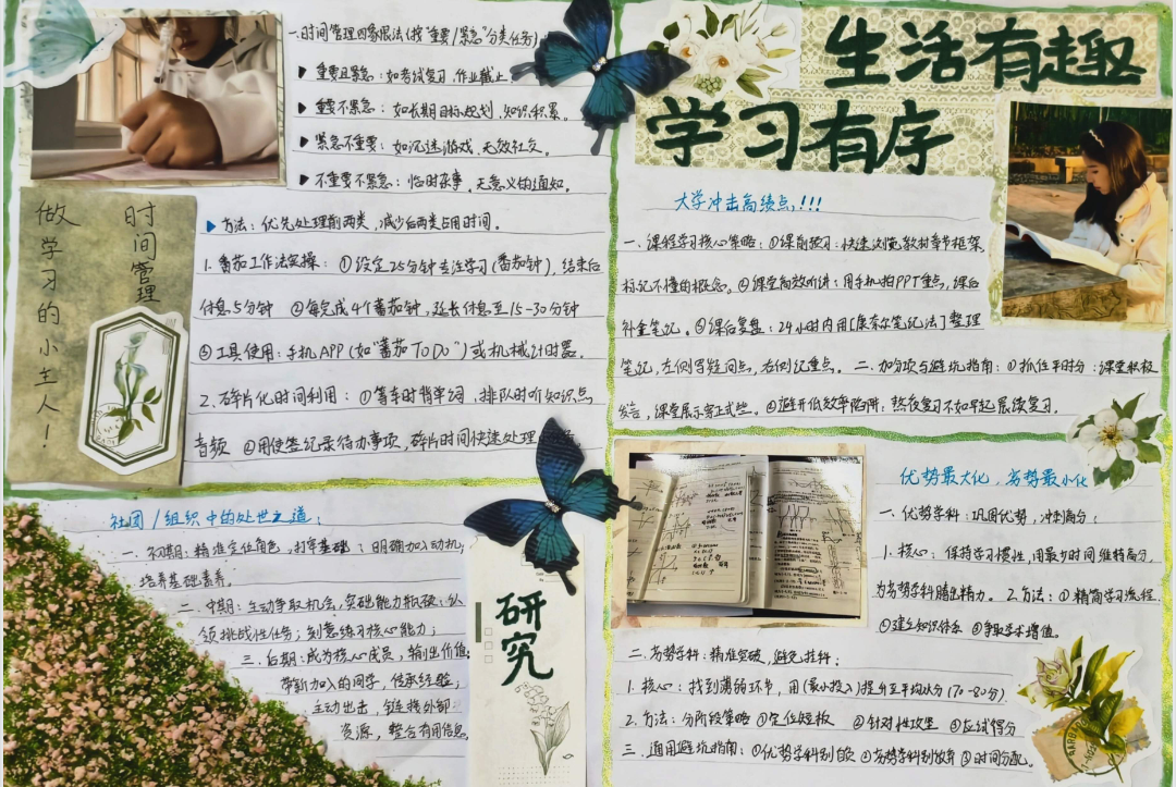 在三期“老员工生活法则”活动中,我们优秀的学长学姐们从学业规划、时间管理到生活小妙招各方面都倾囊相授,然而光听怎么够呢?行动起来才是硬道理!